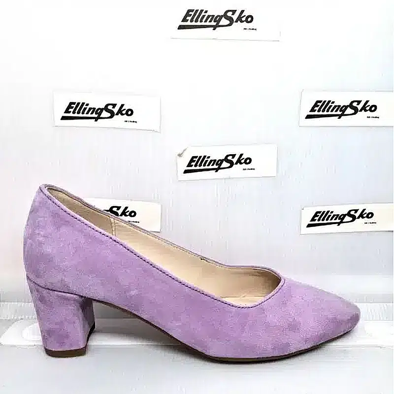 Denne pump i lilla nubuk tilføjer et stilrent pift til din garderobe.