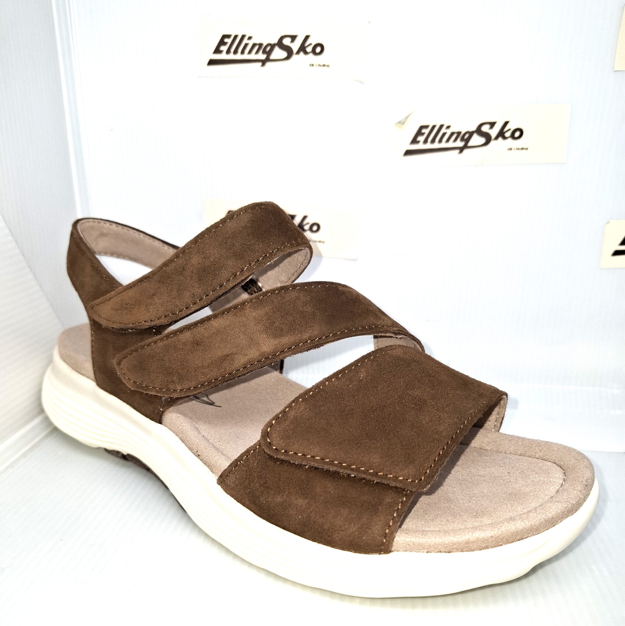 RollingSoft sandal med 3 velcro remme. Sandalen har en supergod opbygning, og er aflastende ved nedsunken forfod. Sandalen er i nubuck og er meget let.