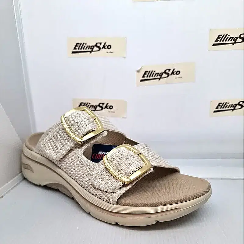 Skechers Archfit sandal i beige har to brede remme over foden.