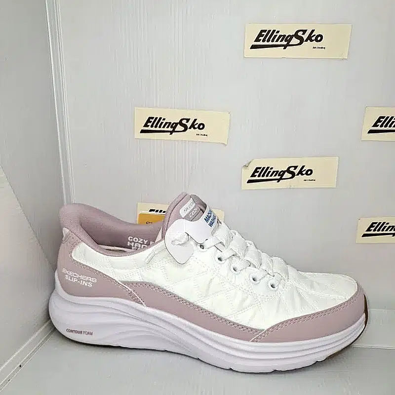 Skechers Contour Foam til damer præsenterer en elegant quiltet overdel, som giver skoen et blødt og moderne udtryk.