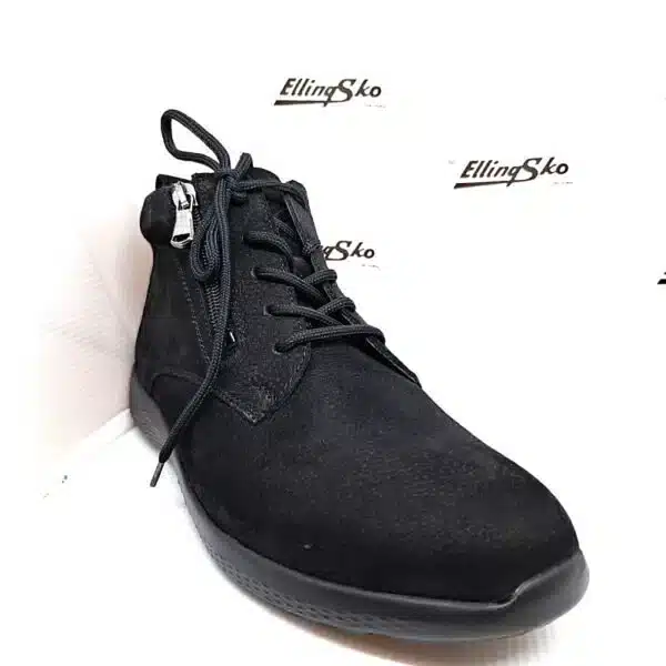 Waldlaufer kort støvle i sort børstet nubuck har to lynlåse, som gør den nem at tage af og på.